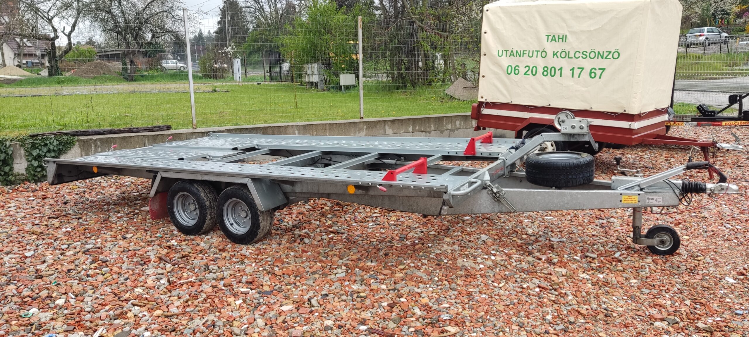 könnyű utánfutó- ponyvával, nehéz utánfutó - gépjárműszállító, igény esetén gépjárműszállítás